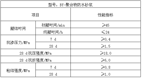 聚合物水泥防水砂漿由水性高分子聚合物膠乳、普通硅酸鹽水泥、石英砂為主要成分,并加入多種改性助劑配制而成。聚合物水泥防水砂漿具有較好的抗?jié)B性能,可采用薄層抹灰施工,同時(shí)該產(chǎn)品還具有一定的柔性和較好的粘接、防裂性能。由于采用水性聚合物膠乳作為改性成分,無(wú)有機(jī)溶劑揮發(fā),對(duì)環(huán)境無(wú)污染。